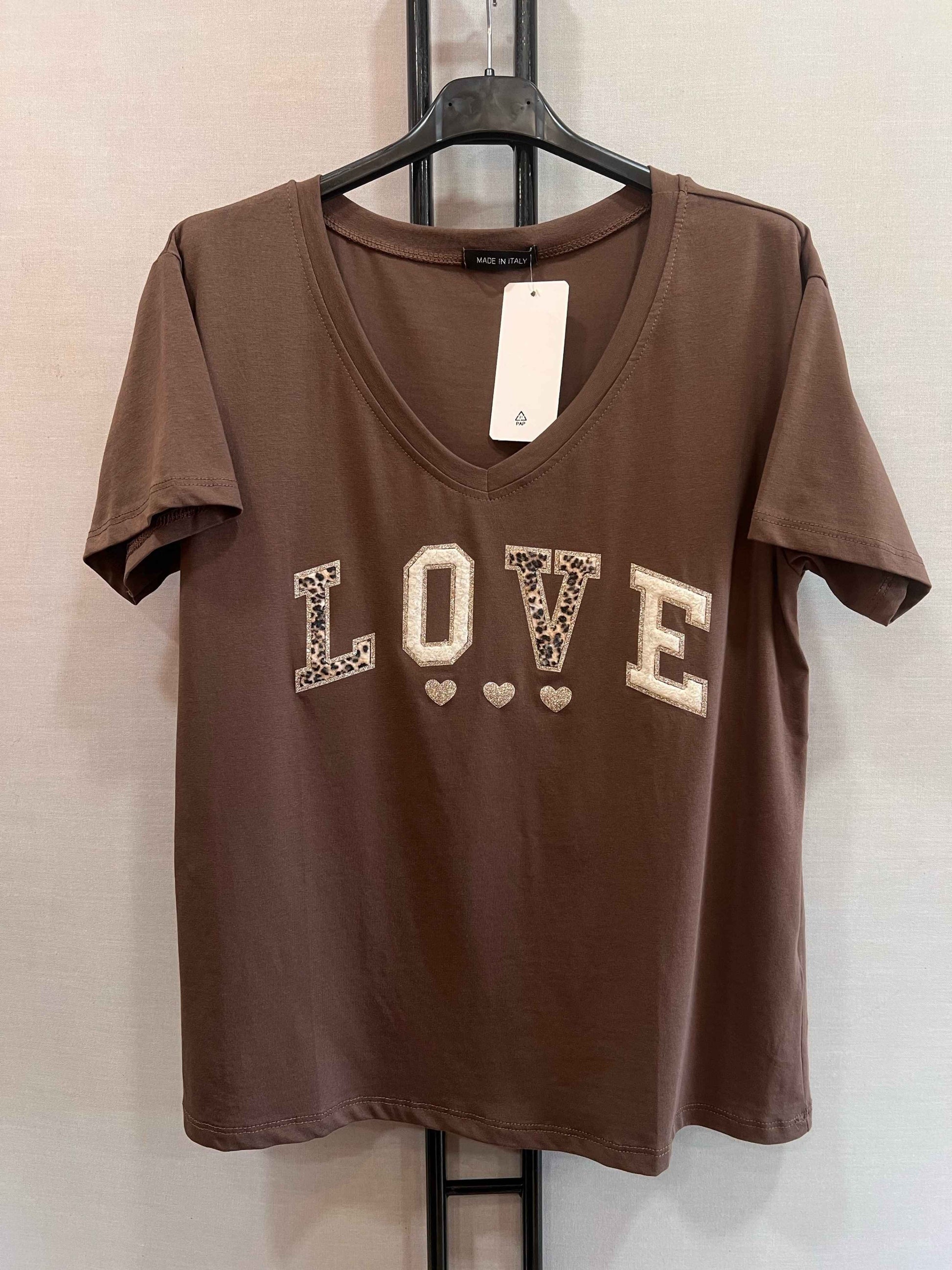 Ce tee-shirt ELIAS chocolat allie confort et style avec son coton doux et son col en V flatteur. L'inscription LOVE, sublimée par des touches discrètes d'imprimé léopard, apporte une touche d’originalité élégante à votre tenue. Parfait pour afficher votre personnalité avec subtilité et modernité.